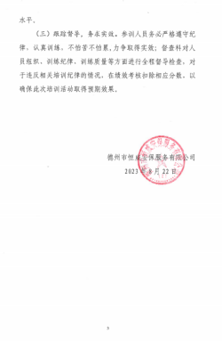 8月24日,恒威公司駐德州學院班組織開展反恐防暴應急演練。