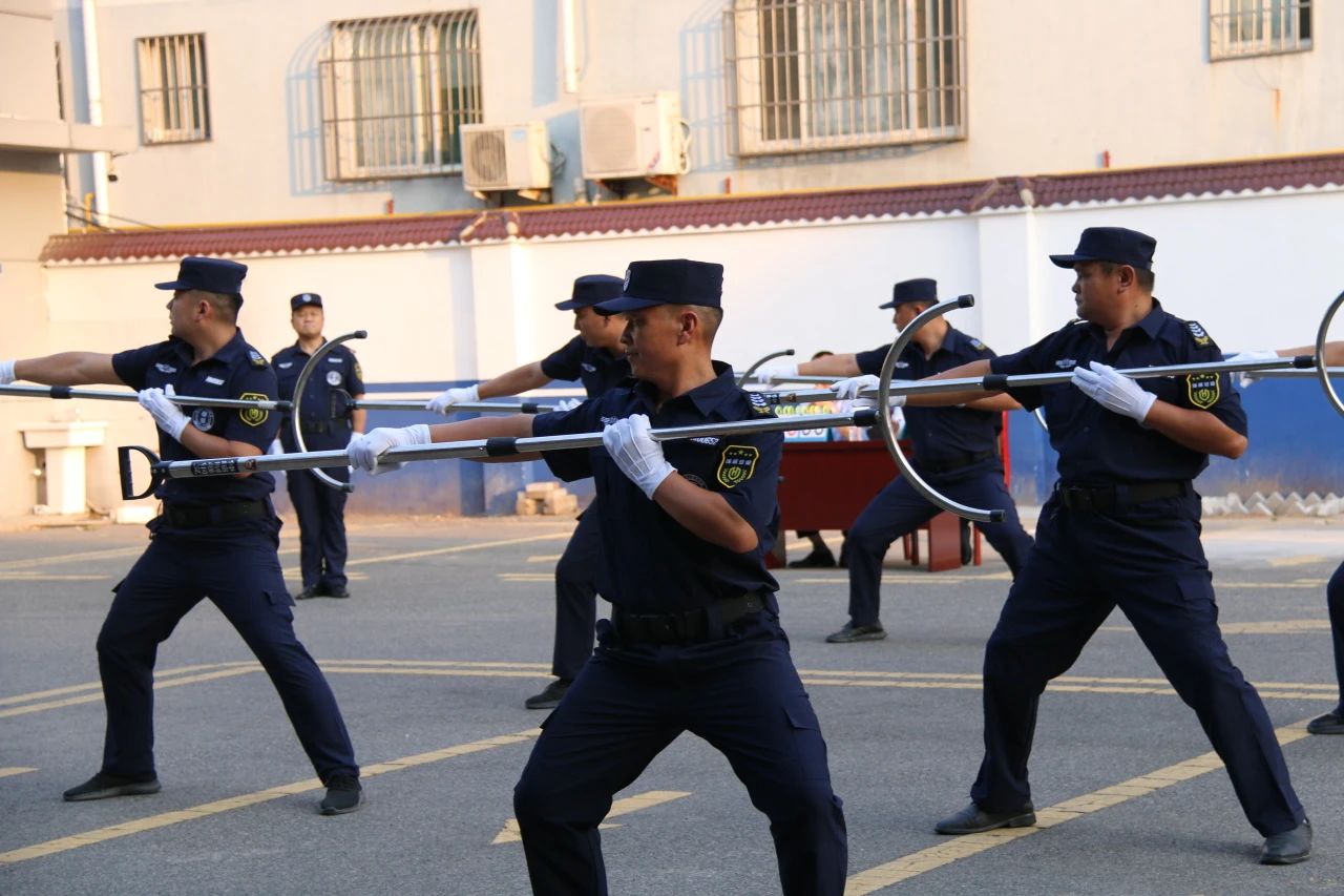 鋼叉操是保安人員應對暴力襲擊和突發事件的重要技能之一,通過嚴格的訓練和考核,保安員能夠熟練掌握鋼叉的使用方法,確保在關鍵時刻能夠迅速、有效應對。每一組隊員演練都力求貼近實戰,精神飽滿,斗志昂揚,充分體現了恒威保安隊伍在反恐防暴、維護公共安全方面的專業素養。