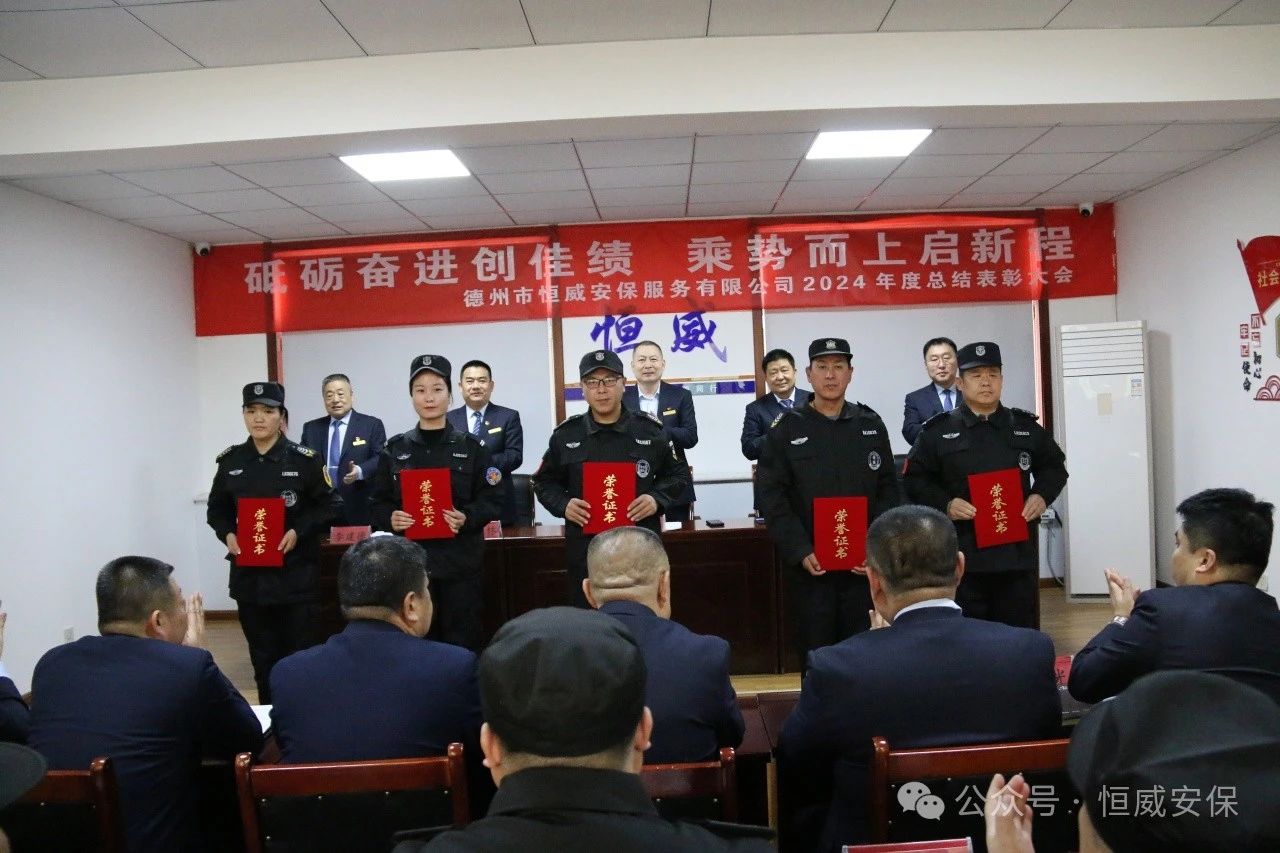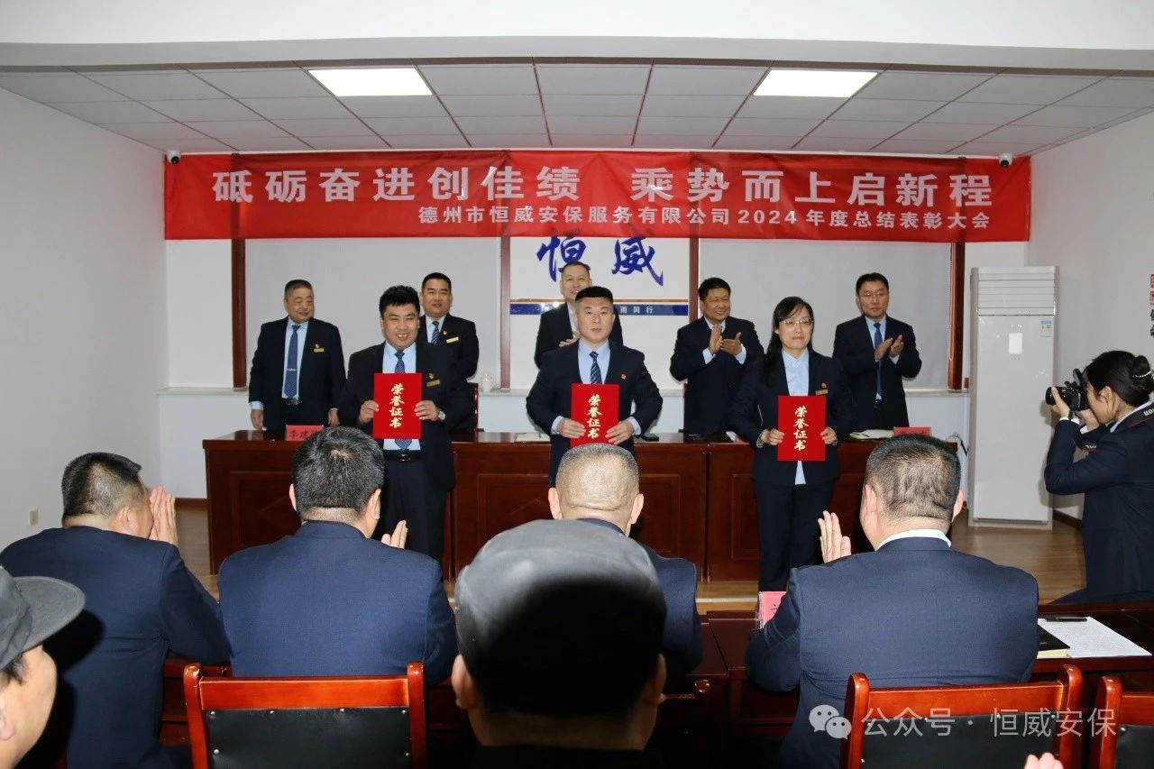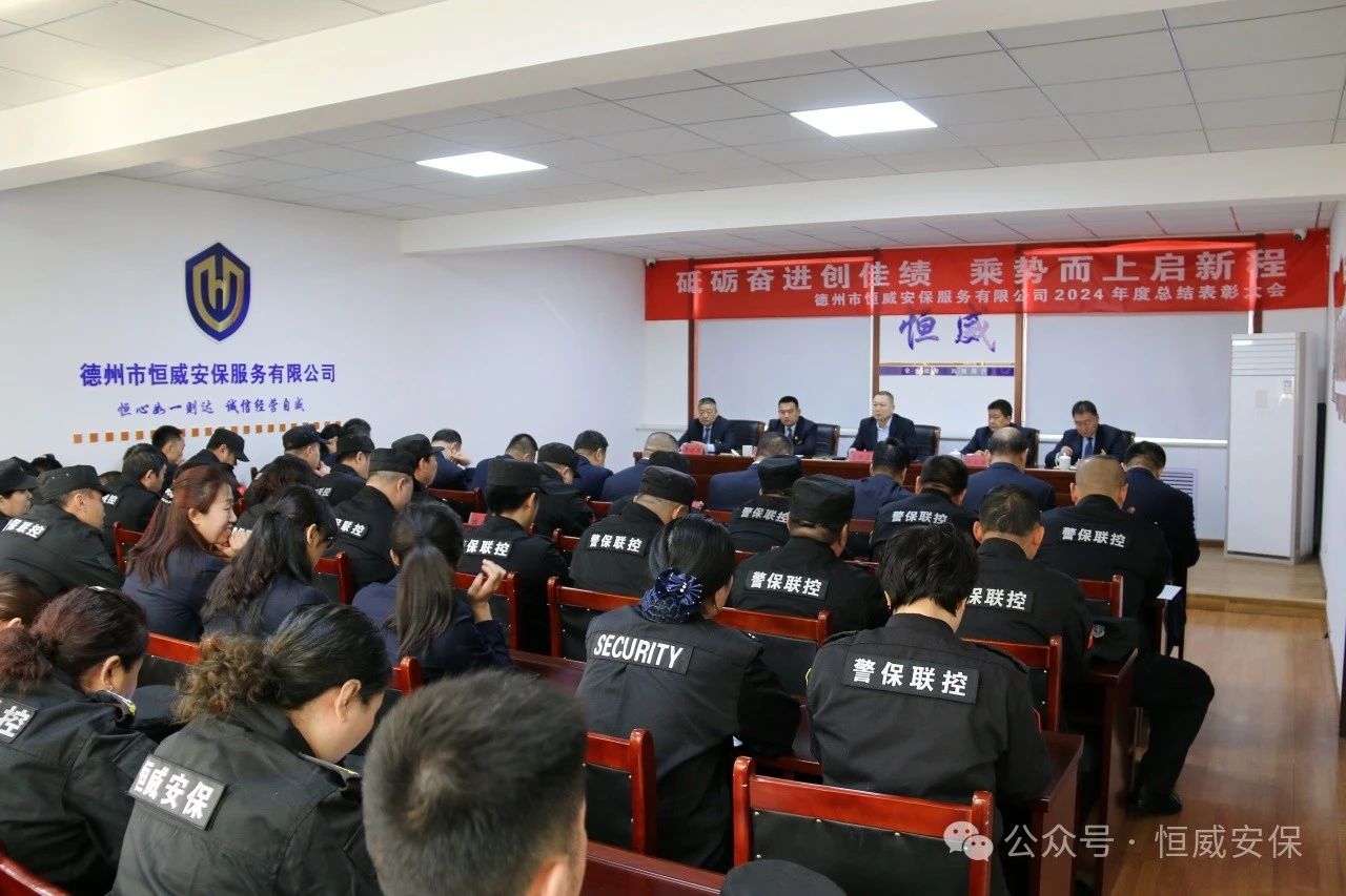 為表彰先進、激勵斗志,總結成績、展望未來,2025年2月19日上午,德州市恒威安保服務有限公司召開2024年度總結表彰大會,公司領導、各級管理人員以及獲得表彰的先進集體代表、優秀管理者、優秀班長、優秀員工代表共60余人參加大會,會議由公司副總經理張玉濤主持。