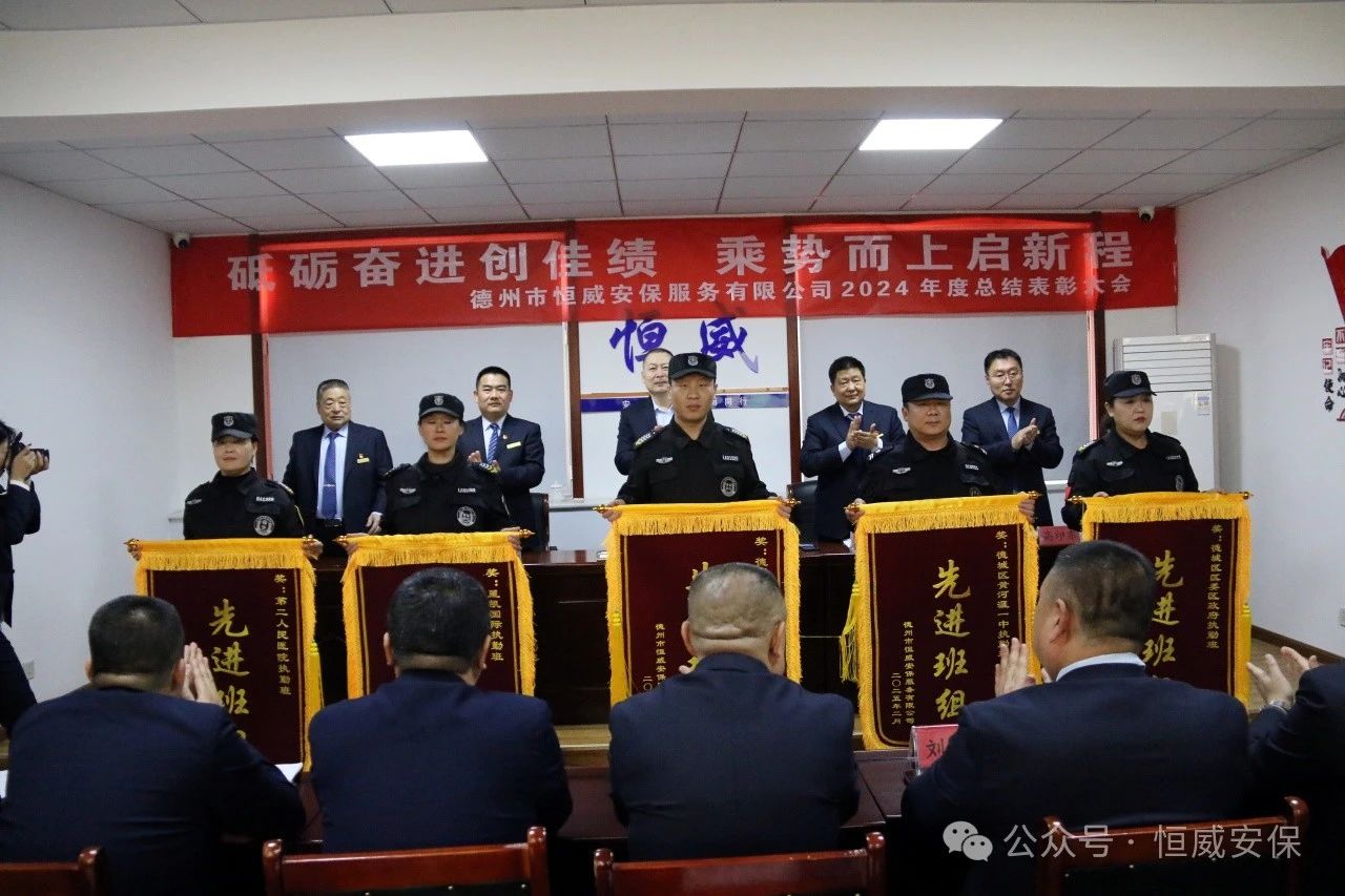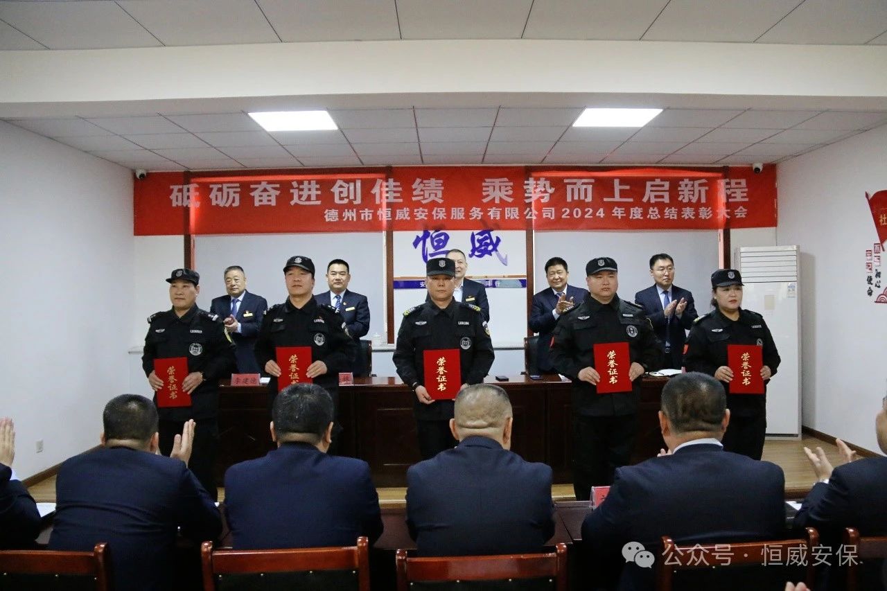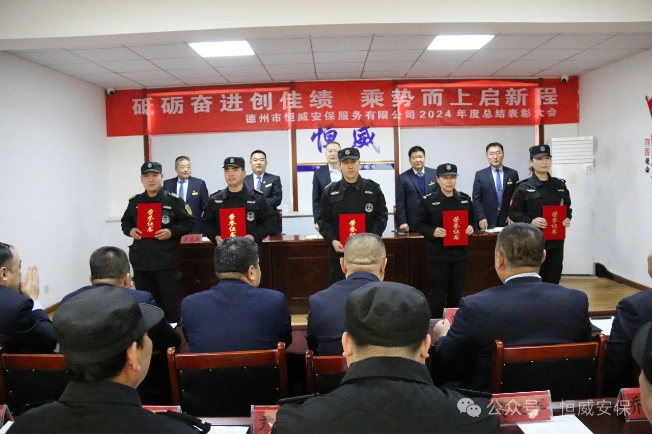 為表彰先進、激勵斗志,總結成績、展望未來,2025年2月19日上午,德州市恒威安保服務有限公司召開2024年度總結表彰大會,公司領導、各級管理人員以及獲得表彰的先進集體代表、優秀管理者、優秀班長、優秀員工代表共60余人參加大會,會議由公司副總經理張玉濤主持。